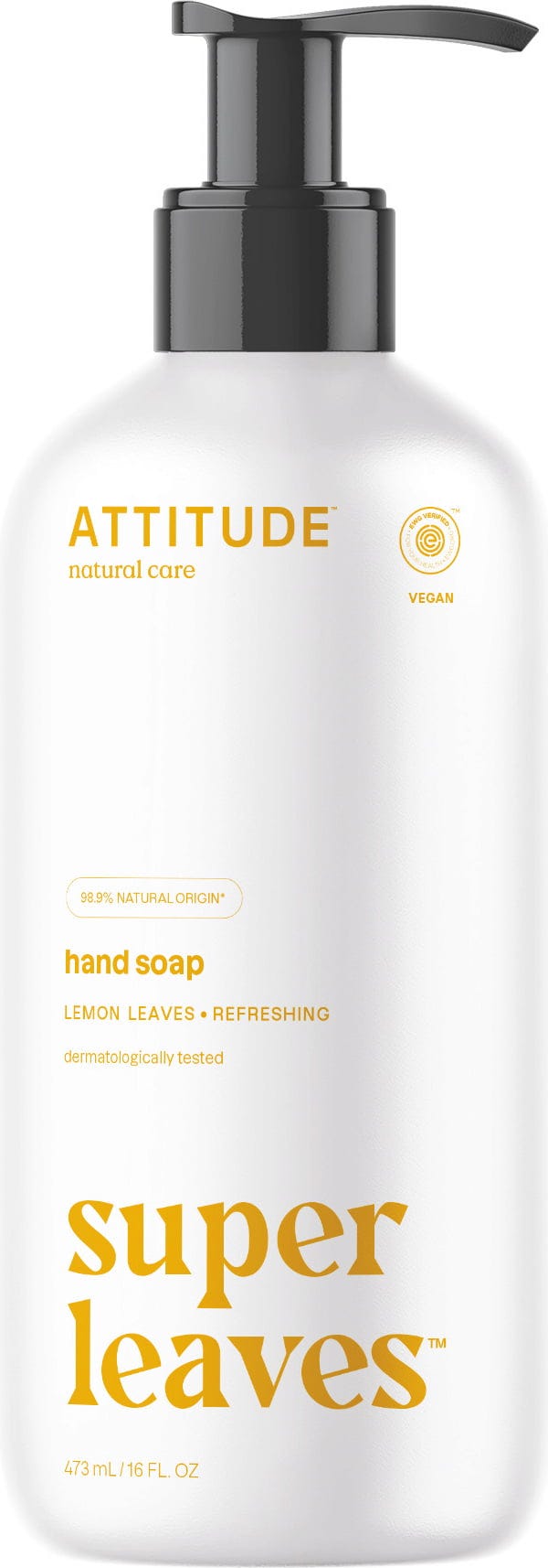 ATTITUDE Savon Mains aux Feuilles de Citronnier "Super Leaves", 473 ml