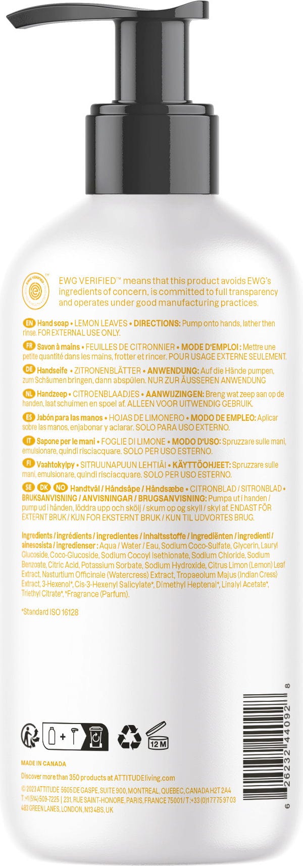 avis en français à propos du produit ATTITUDE Savon Mains aux Feuilles de Citronnier "Super Leaves"