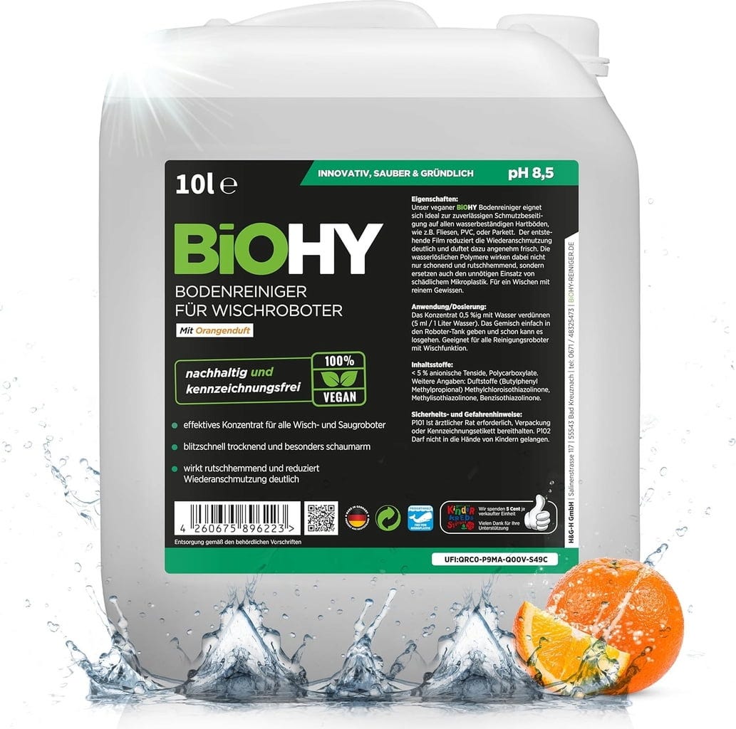 BiOHY Nettoyant pour Sols pour Robot Aspirateur Parfum Orange, 10 L