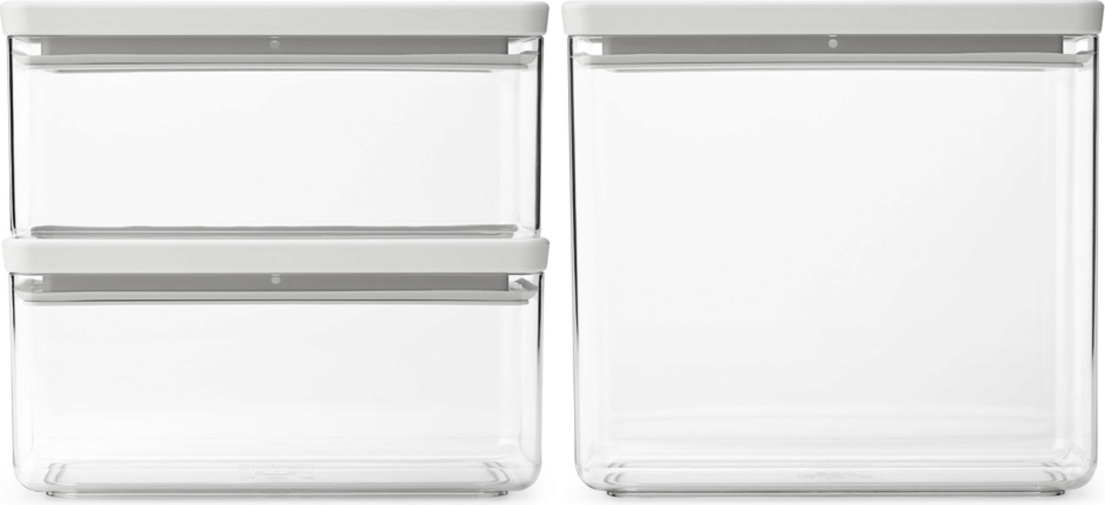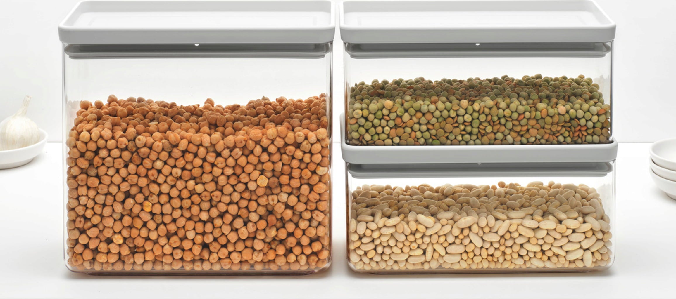 Les récipients en plastique transparent de la série Tasty+ de Brabantia mettent de l'ordre dans le votre garde-manger Empilables en différentes tailles pour un gain de place, ils permettent d'avoir un coup d'oeil sur, et conservent les aliments au frais de manière fiable.