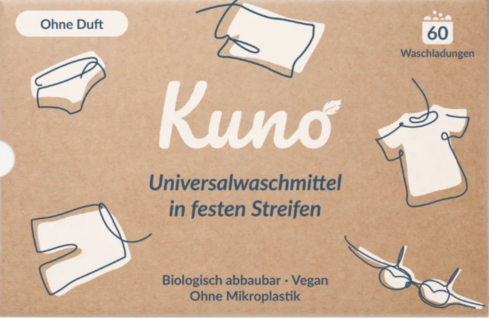 Kuno Feuilles de Lessive Universelle - Sans Parfum, 60 pièces