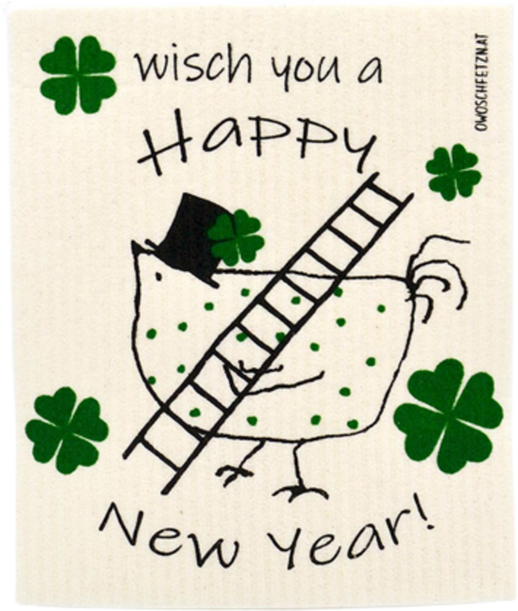 OWOSCHFETZN Lingette Éponge "Happy New Year", Poule Berta Verte