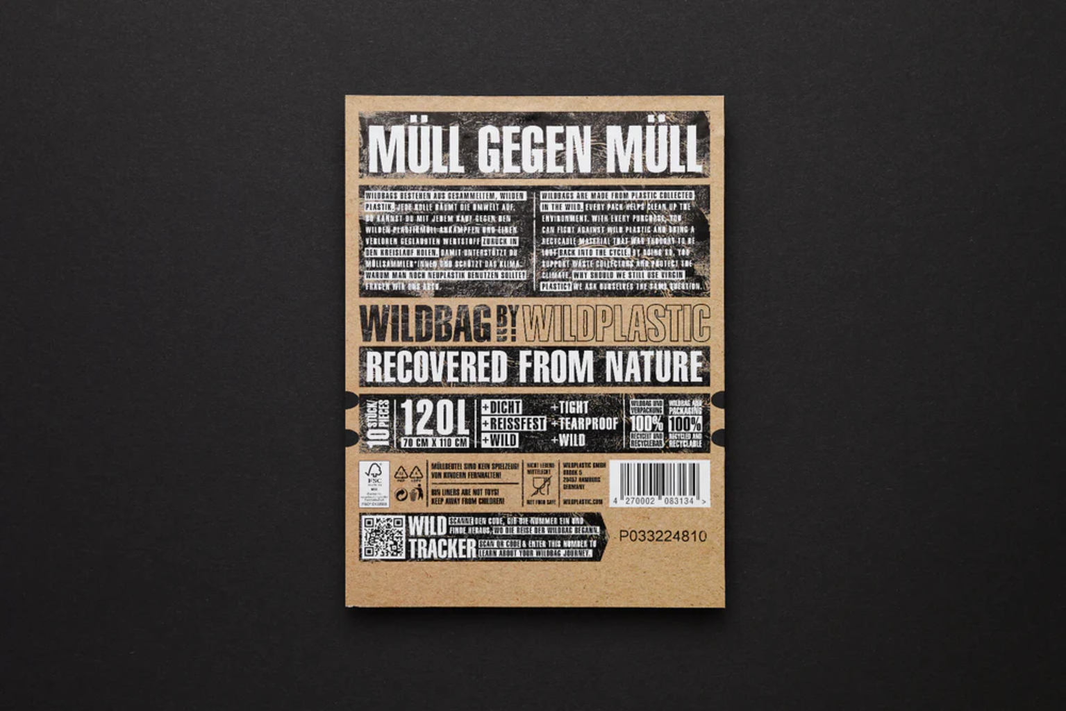 WILDPLASTIC Sacs-Poubelle Wildbag Ultra-Résistants 120 L, 1 pièce