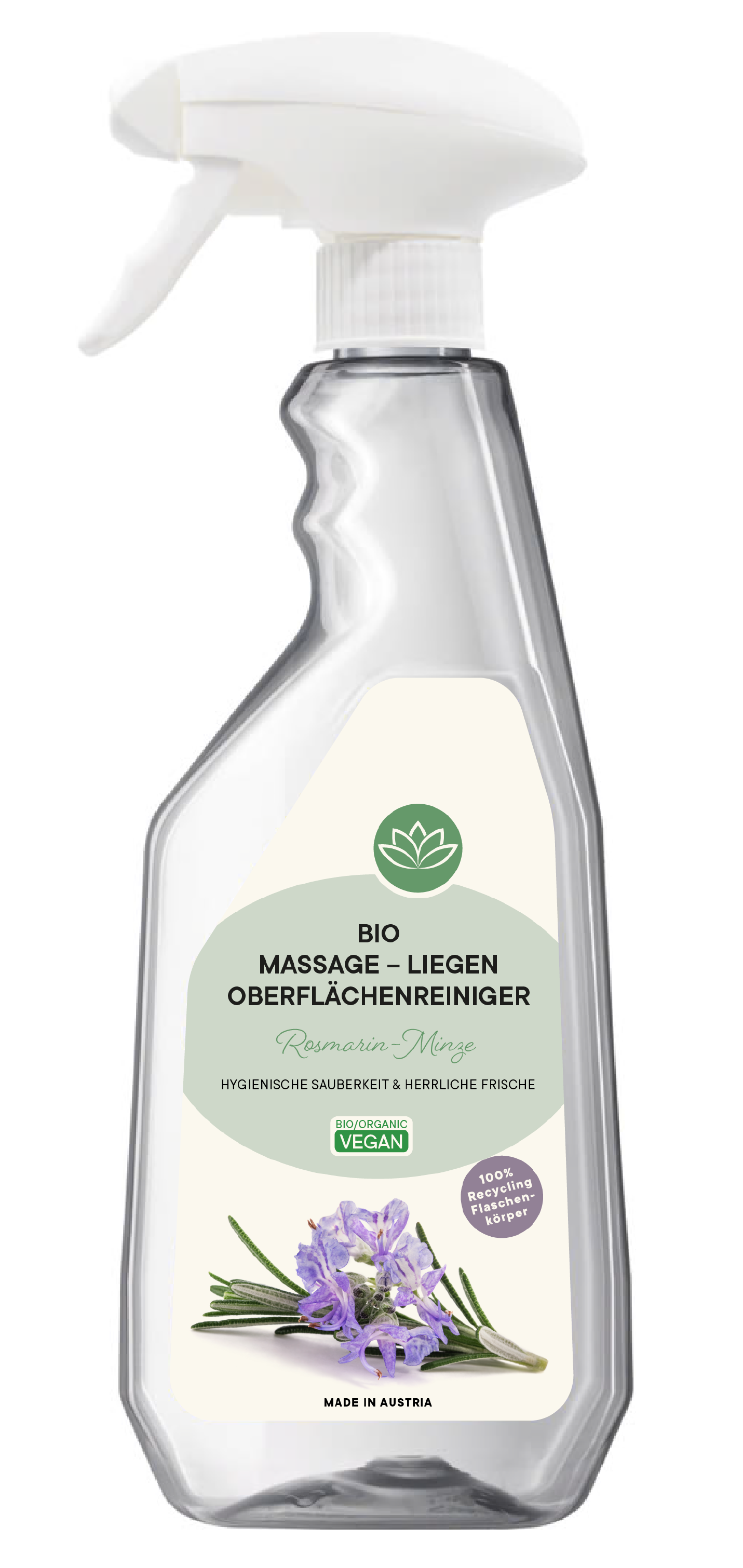 Ce nettoyant spécial naturel est idéal pour l’entretien des tables de massage et des surfaces imperméables. Sa formule à base de matières premières biologiques assure en un instant une propreté hygiénique ainsi qu’un agréable parfum frais et herbacé.